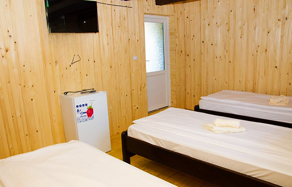 Сучасні , затишні та просторі номери з усіма зручностями. Тримісний — 3 односпальні ліжка, телевізор, холодильник; санвузол (душова кабіна, туалет, умивальник).