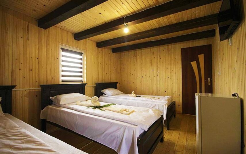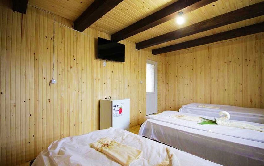 Сучасні , затишні та просторі номери з усіма зручностями. Чотиримісний номер— двоспальне та 2 односпальні ліжка, телевізор, холодильник; санвузол (душова кабіна, туалет, умивальник).